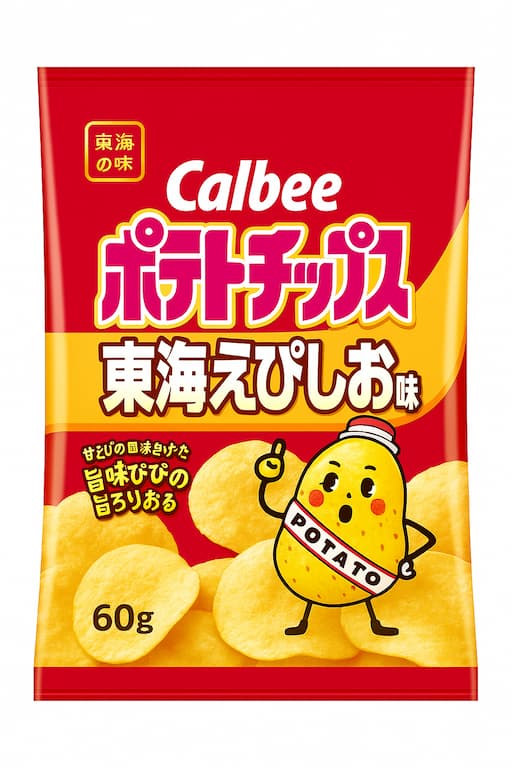 ポテトチップス 東海えびしお味 中部エリア限定!三重県産伊勢海老を使用した贅沢ポテトチップス──香ばしさとホワイトペッパーが決め手 中部エリア限定販売!三重県産伊勢海老を贅沢に使用したポテトチップスが登場しました。じっくりと焼き上げた海老の香... -