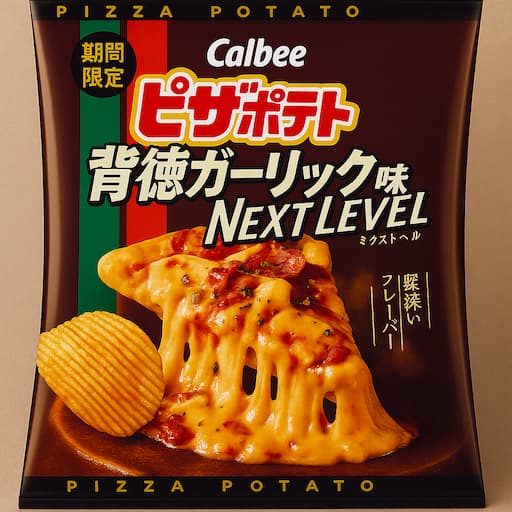ピザポテト 背徳ガーリック味 ネクストレベル 濃厚なにんにくの風味と、こってりとした肉の旨味がやみつきになる「背徳感たっぷり」の濃厚ピザポテトです。後から徐々にと赤唐辛子のピリとした辛さがやがてやって来ます。この商品は、昨年大ヒットした「... -