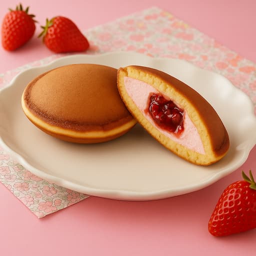 どらもっち とろーり苺ソース もちもちとした食感の生地で、甘酸っぱい苺ソースと風味豊かないちごクリームを優しく包み込み、春の訪れを感じさせるどらもっちです。 ※上記の画像はAI生成によるイメージです。実際の製品パッケージとは異なる場合がありま... -