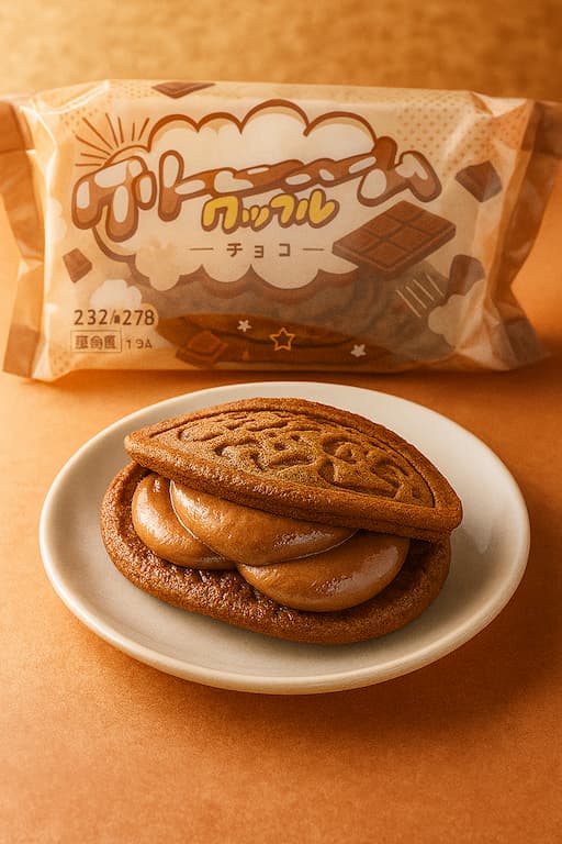 ふわっとやわらかなワッフル生地に、濃厚でなめらかなチョコクリームをこれでもかというほどたっぷりと詰め込んだ一品。