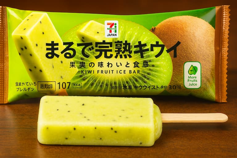 「7プレミアム まるで完熟キウイ」は、果実感・食感・香りのすべてにおいて“まるでキウイ”を堪能できる完成度の高いアイス。フルーツアイスが好きな方、さっぱり系が好きな方はぜひ一度試してみてください。夏の定番になること間違いなし!