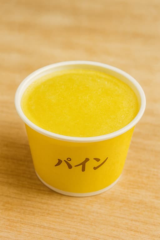 サクレ パインの最大の魅力は、大きめにカットされた果肉がゴロゴロと入っているところ。冷たいかき氷と一緒に食べれば、シャリシャリ感と果実のジューシーさが同時に楽しめます。パイン本来の甘酸っぱさとナチュラルな風味が、後味までさっぱりと広がります。