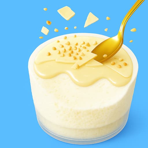 - パリッ:ホワイトチョココーチングはスプーンで割れる硬さと楽しさを両立