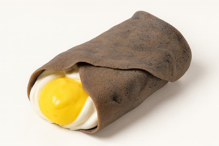 - ココアクレープ生地:もちもちとした食感でほろ苦さがアクセント