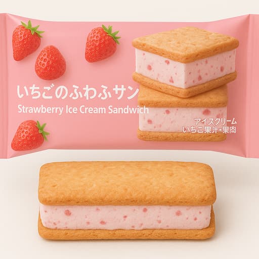 2025年9月9日発売「7プレミアム いちごのふわふわサンド」。ふわふわケーキでいちごソース入りのいちごアイスをサンドした新作アイス。価格や発売情報をチェック!