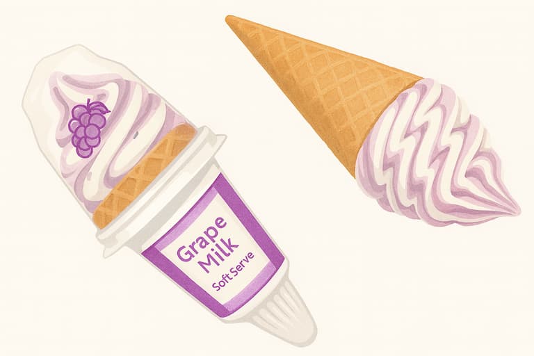 Fluffy sponge cake sandwich filled with strawberry ice cream and strawberry sauce for a sweet-and-tangy delight. - 7-Premium Grape Milk Waffle Cone (Sept 9 release)