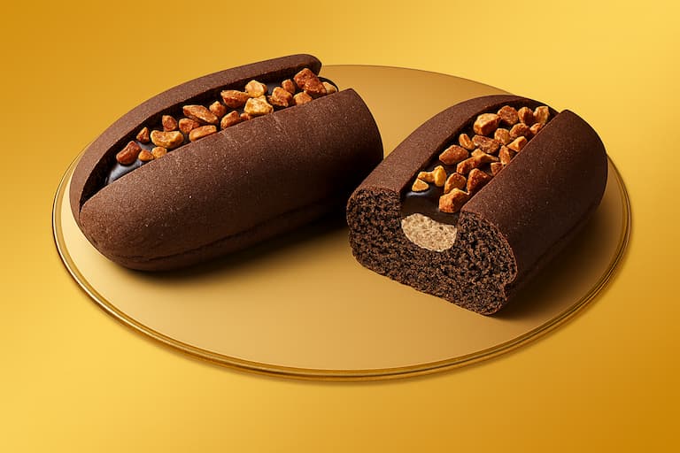 2025年9月16日発売の「GODIVA ナッツ&ショコラロール」は、しっとりチョコ生地にチョコクリームとチョコホイップをサンドし、ナッツがアクセントになった贅沢な菓子パン。