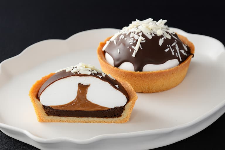 ふわとろ食感のマシュマロとサクサクのタルト生地を組み合わせ、さらに濃厚な生キャラメルソースを閉じ込めた、ボリューム感のある贅沢スイーツです。