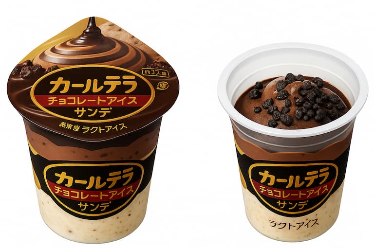 チョコチップ入りの濃厚バニラアイスに、うずまき状のチョコソースとチョコアイスをたっぷりオン!仕上げには、ほろ苦くカカオの風味豊かなチョコレートクッキーをトッピングした、贅沢なチョコスイーツです。