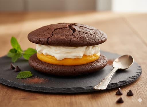 🎃 Pumpkin & Mascarpone Dorayaki – cocoa-flavored pancakes filled with smooth pumpkin paste and mascarpone cream, blending Japanese and Western tastes.