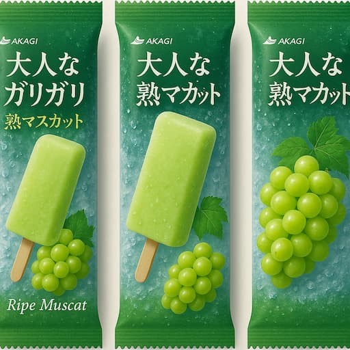 「大人なガリガリ君完熟マスカット」は、贅沢な完熟マスカット果汁を44%使用した、爽やかでジューシーなアイスキャンディーです。外側は香り豊かなマスカットアイス、中にはガリガリとした食感が楽しいマスカットかき氷が詰まっています。
