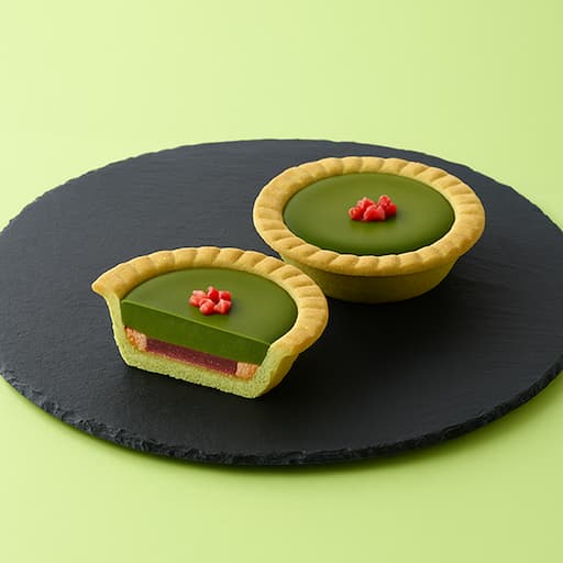 抹茶の濃厚なコクと、いちごの爽やかな酸味が楽しめる贅沢な抹茶タルトが登場! 香ばしく焼き上げた抹茶タルト生地に、濃厚ないちごガトーショコラを重ね、仕上げに抹茶チョコソースをたっぷり流し込みました。トッピングのフリーズドライいちごが、甘酸っぱさと食感のアクセントを加えています。
