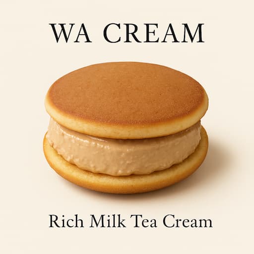 Soft & fluffy dorayaki buns filled with rich milk-tea whipped cream.