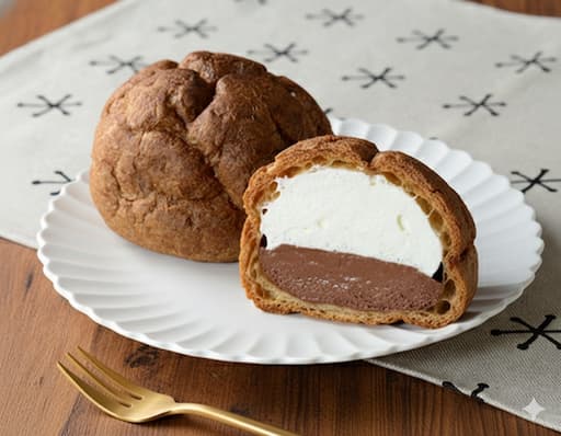 たっぷり入ったチョコクリームと、軽いホイップの2層仕立てで、ボリューム満点のシュークリームです。