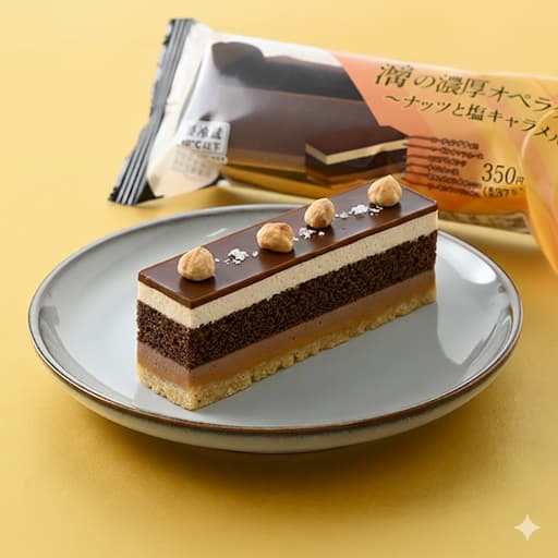 【2025年11月11日発売】ファミマ新作「6層の濃厚オペラケーキ」|ナッツ×塩キャラメルの贅沢ミックス!