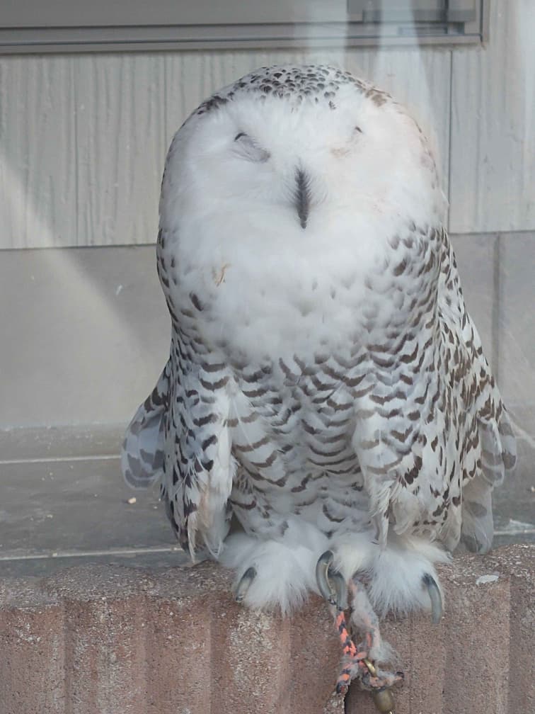ガラス越しで見られたシロフクロウが、まぶしそうに目を閉じていて癒され度MAX。