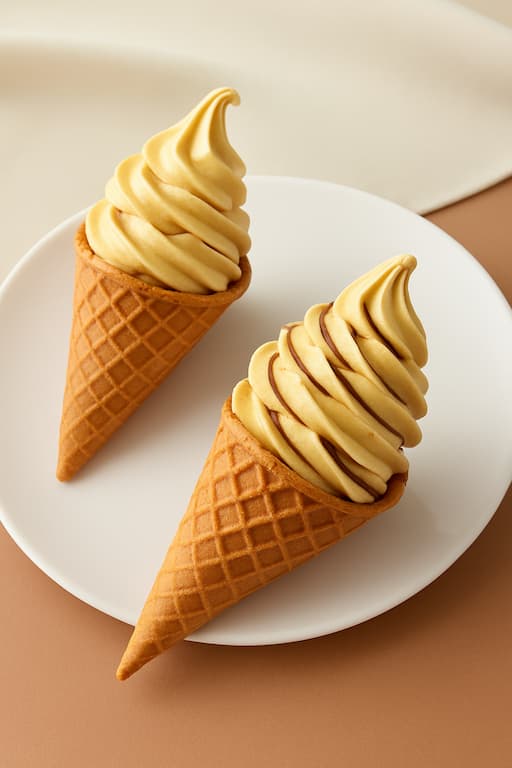 ワッフルコーンの香ばしさも加わり、