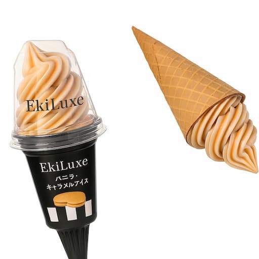 🟫 こだわり① キャラメルアイス × チョコアイスの“2色巻き”