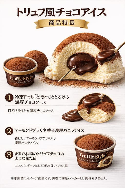 トリュフチョコアイスは、動画映えする瞬間と冬らしい濃厚さを両立した新作です。