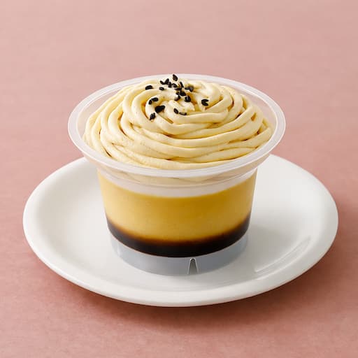 The bottom is a pudding made with Beni Haruka sweet potato, known for its strong natural sweetness.