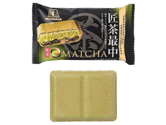 京都府産の宇治抹茶を贅沢に使用し、その芳醇な香りと奥深いコクが際立つ本格的な味わいが魅力です。 アイスクリームには、希少な高級砂糖「和三盆」と北海道産クリームを惜しみなく使用。自然で上品な甘さと、とろけるようななめらかな口どけを実現しています。最中の皮には、パリッとした食感を保つための「チョコの壁」と呼ばれるサイドコーティングが施され、時間が経ってもそのおいしさが損なわれません。細部にまでこだわりが感じられる逸品です。 さらに、北海道産小豆を使った甘納豆を餡にプラス。ほろっとした食感と、やさしい甘さが口の中にふわりと広がります。 そして、「大阪・関西万博」のテーマである「食と暮らしの未来」に合わせ、最中の皮は可愛らしい2つの山型にデザインされました。食べきりやすいサイズ感で、シェアしたり、少しずつ味わったりするのにもぴったりです。 本格的な和スイーツをお探しでしたら、ぜひ森永製菓の「匠茶最中」で、贅沢なひとときをお過ごしください。