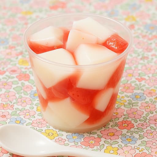 もちもちでつるんとした食感のミルクわらびに苺ソースを合わせた和洋の融合スイーツ