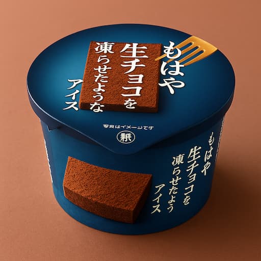 その名の通り、まるで生チョコをそのまま凍らせたような濃厚な味わいとねっちり食感が魅力のカップアイス。スプーンがすっと沈み、口に入れるととろけるような濃密な舌ざわりが広がります。