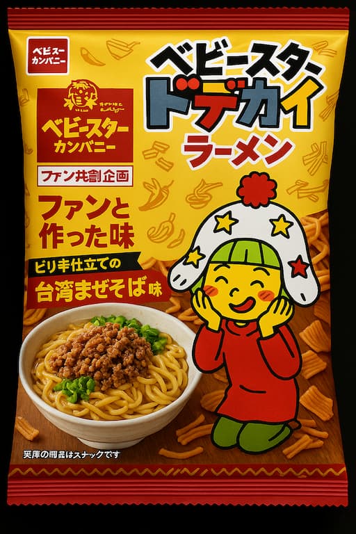 【新発売】ベビースタードデカイラーメン 台湾まぜそば味|ファンと共創!ピリ辛&濃厚な旨みがやみつきになる本格スナック