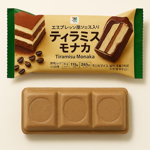 セブン&アイのオリジナルブランド「7プレミアム」から登場した【ティラミスモナカ】は、本格ティラミスの味わいをモナカアイスで再現した一品。