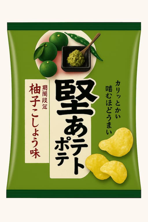 2025年9月29日発売、堅あげポテト「柚子こしょう味」が今年も秋限定で登場。九州産柚子こしょうを増量し、香りと辛さが進化! 『堅あげポテト 柚子こしょう味』とは? ※上記の画像はAI生成によるイメージです。実際の製品パッケージとは異なる場合がありま... -