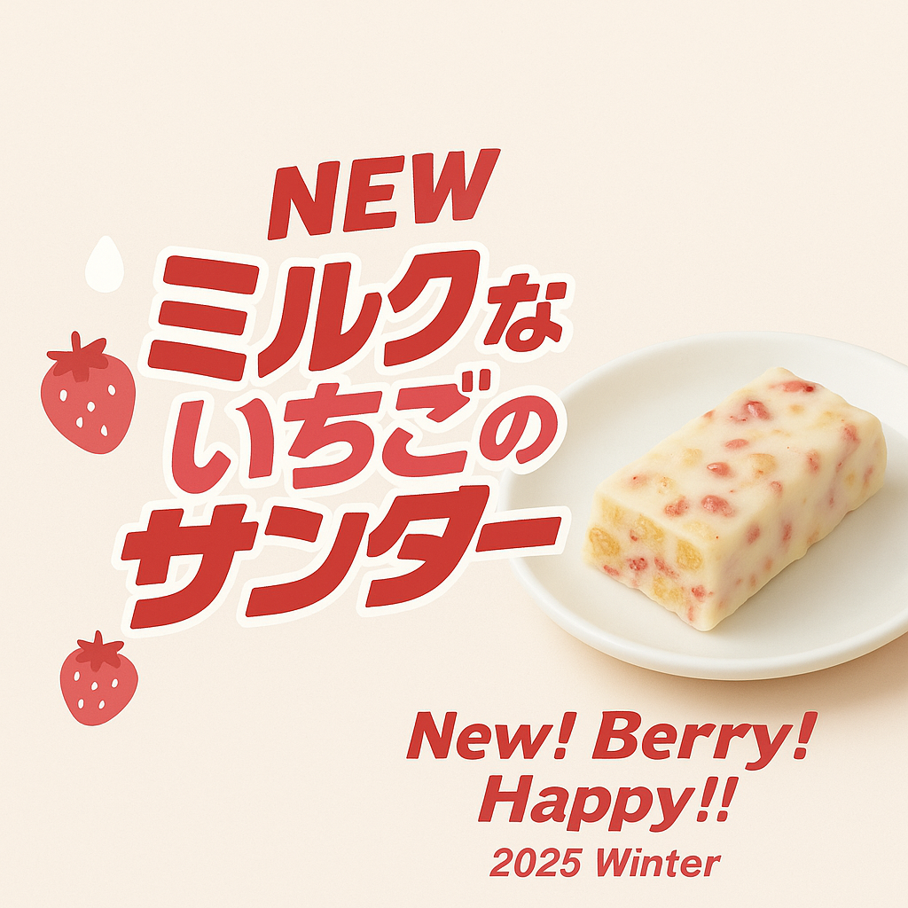 🍓【2025年11月11日発売】ブラックサンダー新作「ミルクないちごのサンダー」|冬限定!ミルク×いちごのザクザク食感で“ニューベリーハッピー”!