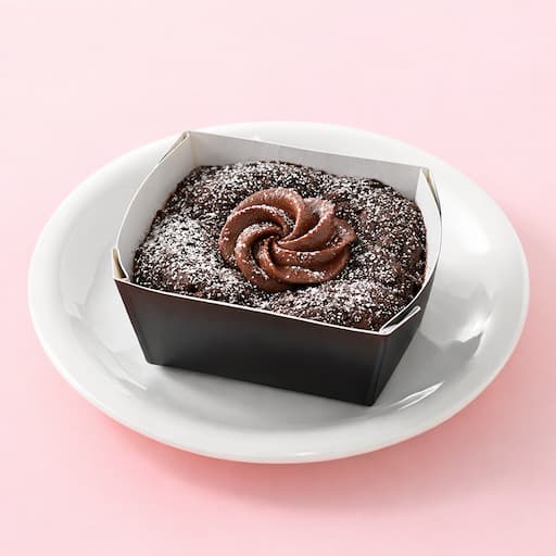 This is a warm-style chocolate cake with soft baked chocolate sponge and rich, melting chocolate sauce inside.