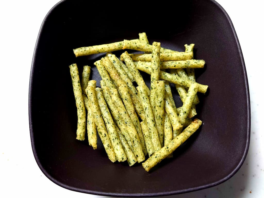 いつものじゃがりこより、全体的に緑色が濃い印象。