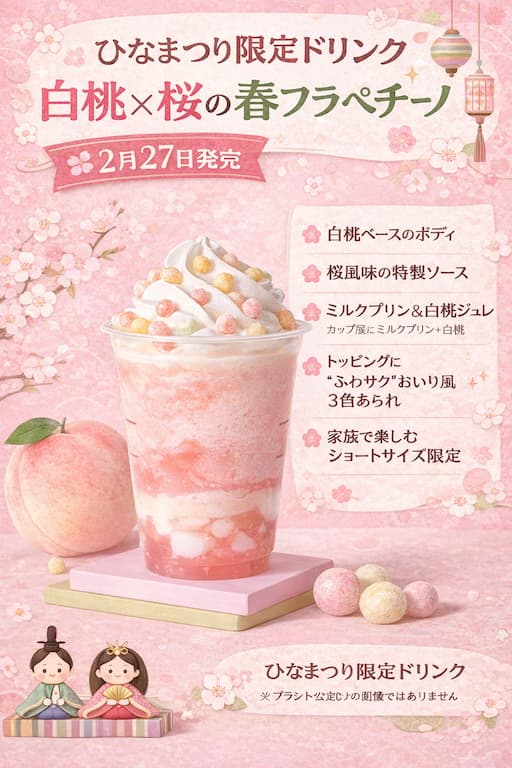 2026年2月27日より、スターバックスから「ひなまつり フラペチーノ® ショートサイズ」が発売されます。