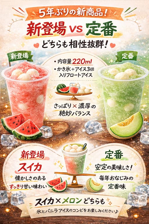 さわやかなスイカの甘さと、濃厚なバニラアイスの組み合わせが特徴で、夏の気分に合う設計となっています。