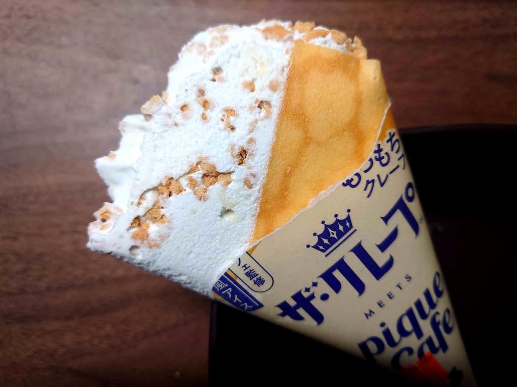 セブン限定の「ザ・クレープ ピケカフェ」は、もちもちクレープ生地とクッキー入りカフェアイスの食感バランスが楽しめる、満足度の高いアイスでした。